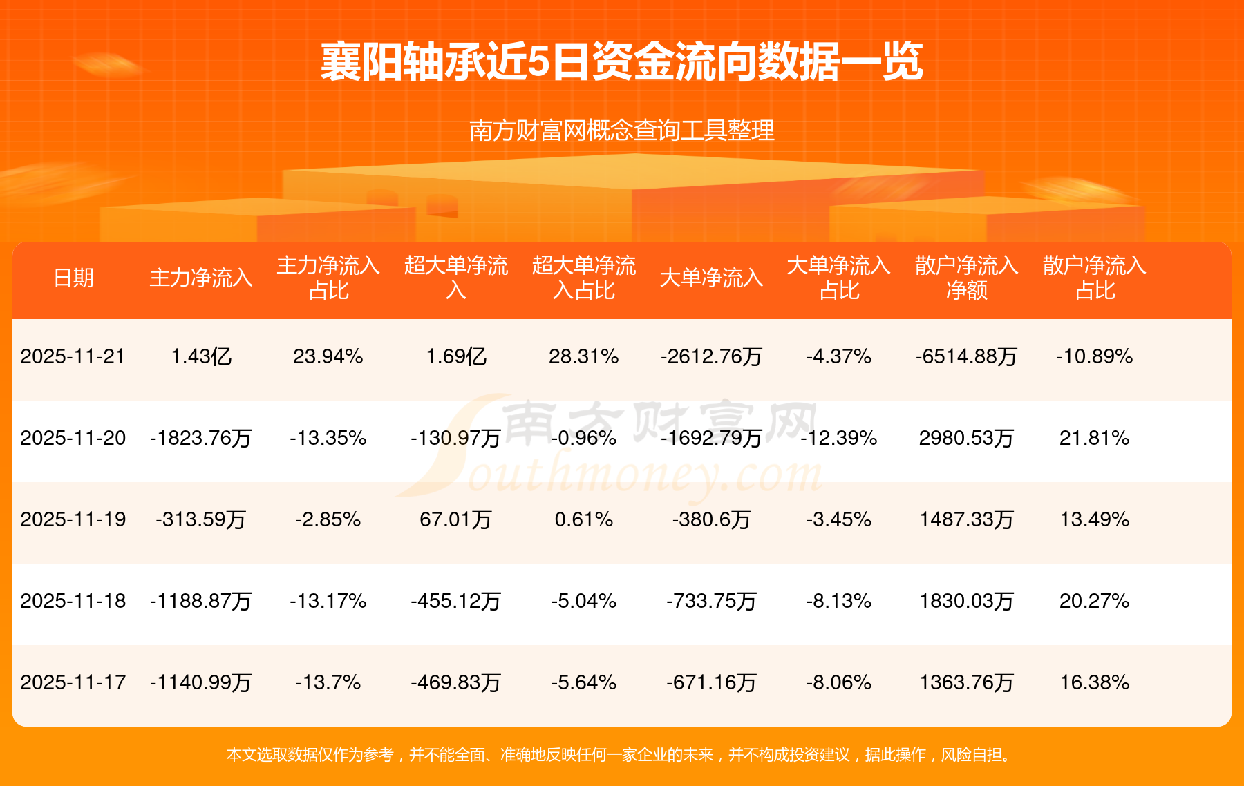 11月21日該股主力凈流入1.43億元,超大單凈流入1.69億元,大單凈流出2612.76萬元,中單凈流出7807.22萬元,散戶凈流出6514.88萬元。