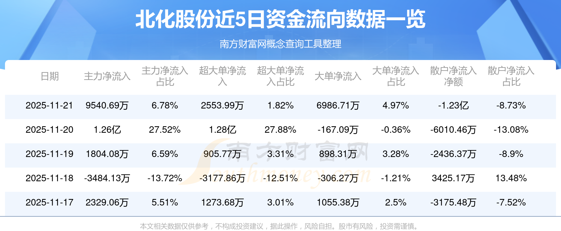 11月21日該股主力資金凈流入9540.69萬元,超大單資金凈流入2553.99萬元,大單資金凈流入6986.71萬元,中單資金凈流入2736.16萬元,散戶資金凈流出1.23億元。