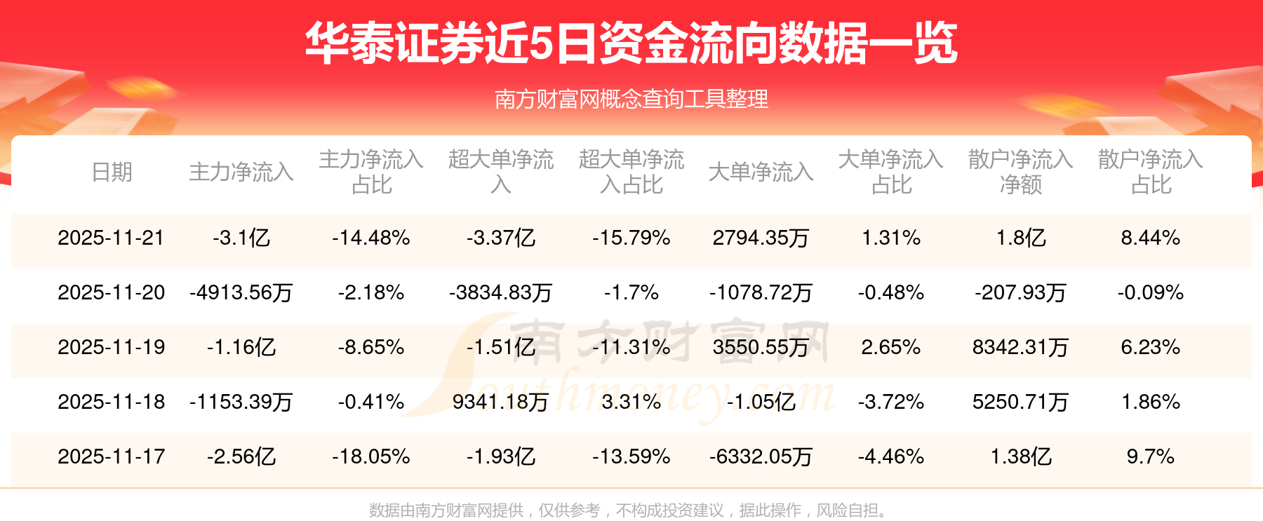 資金流向數(shù)據(jù)方面,11月21日主力資金凈流流出3.1億元,超大單資金凈流出3.37億元,大單資金凈流入2794.35萬(wàn)元,散戶資金凈流入1.8億元。