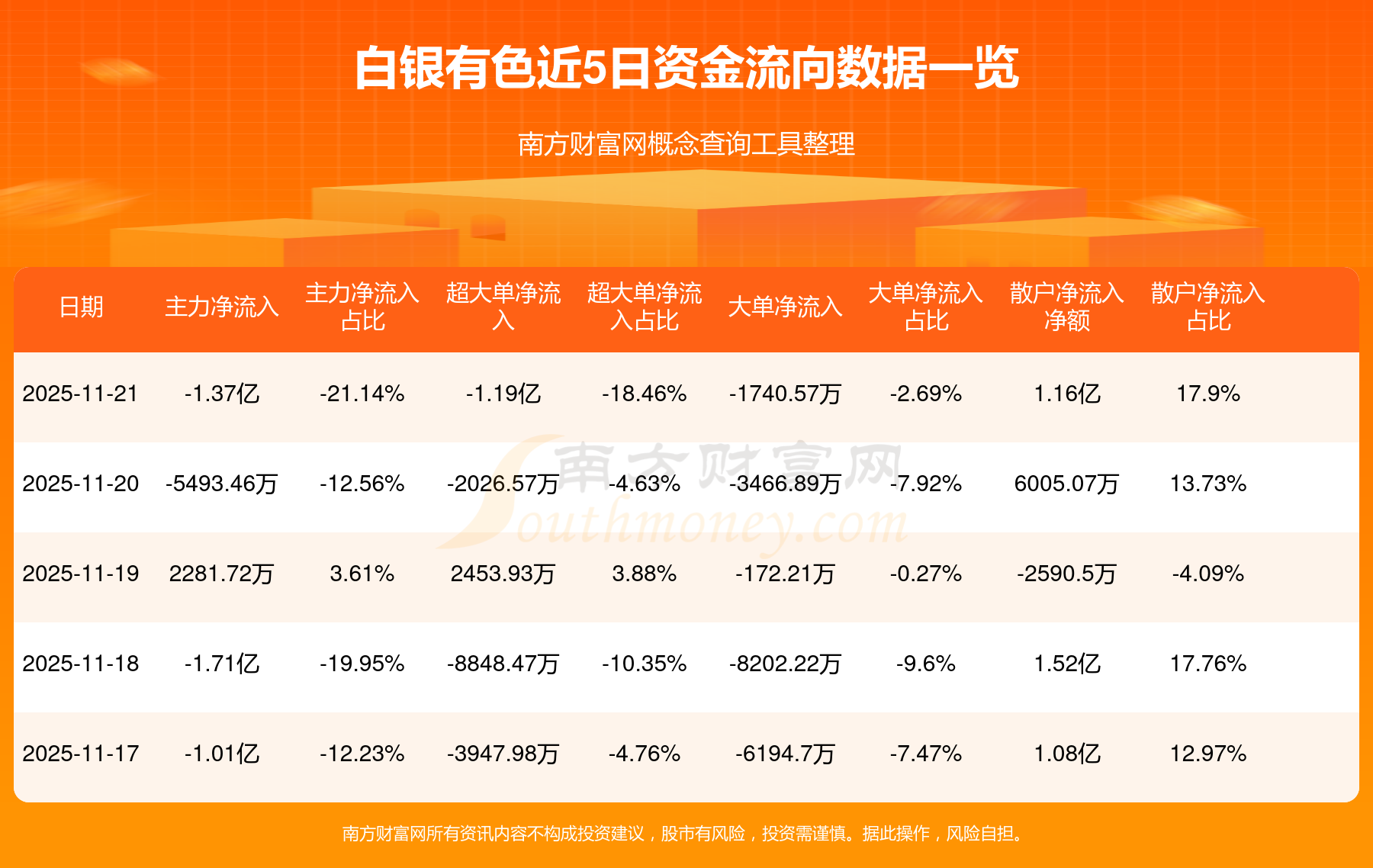 11月21日該股主力資金凈流出1.37億元,超大單資金凈流出1.19億元,大單資金凈流出1740.57萬(wàn)元,中單資金凈流入2100.44萬(wàn)元,散戶資金凈流入1.16億元。