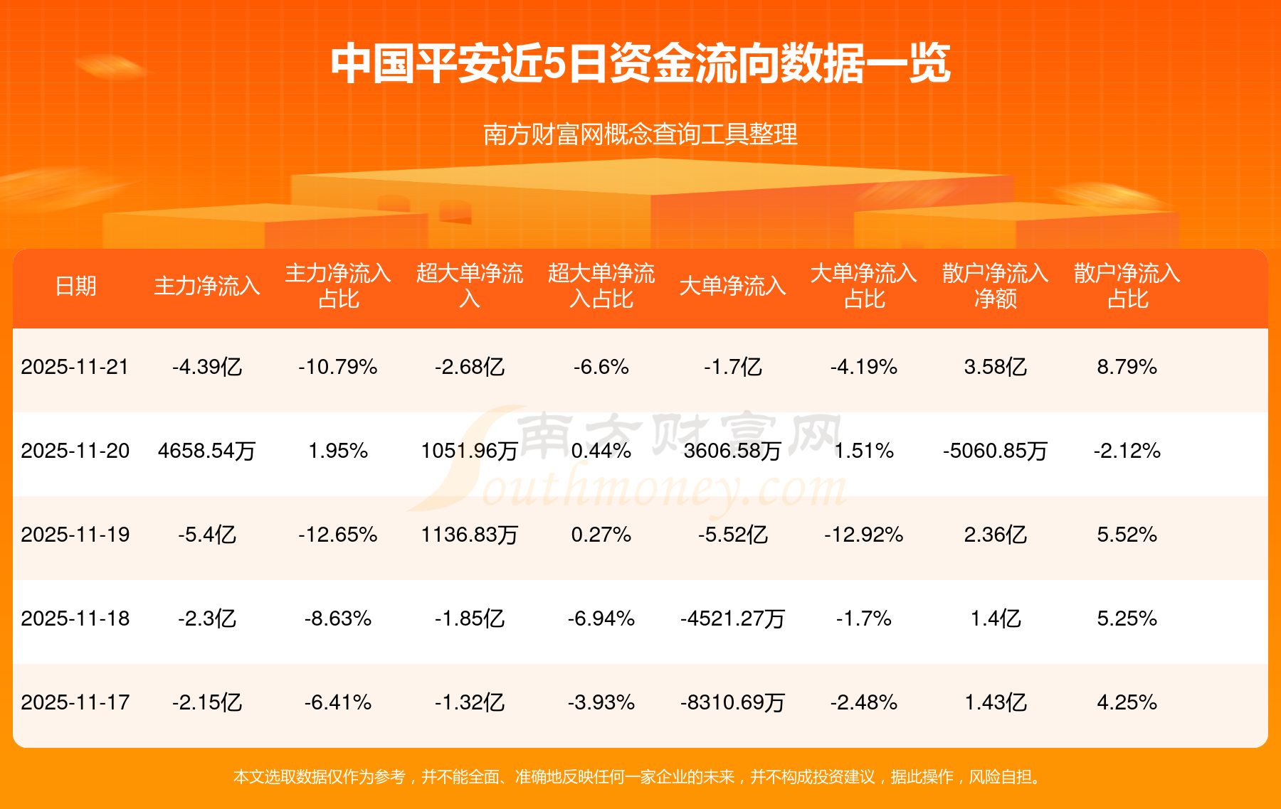 11月21日該股主力凈流出4.39億元,超大單凈流出2.68億元,大單凈流出1.7億元,中單凈流入8101.17萬元,散戶凈流入3.58億元。