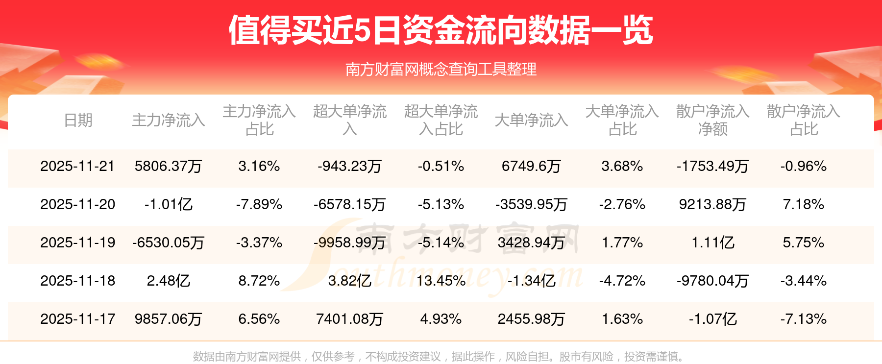 近5日資金流向一覽見下表:
