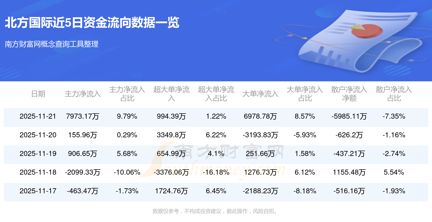 11月21日主力資金凈流入7973.17萬元,超大單資金凈流入994.39萬元,換手率6.97%,成交金額8.15億元。