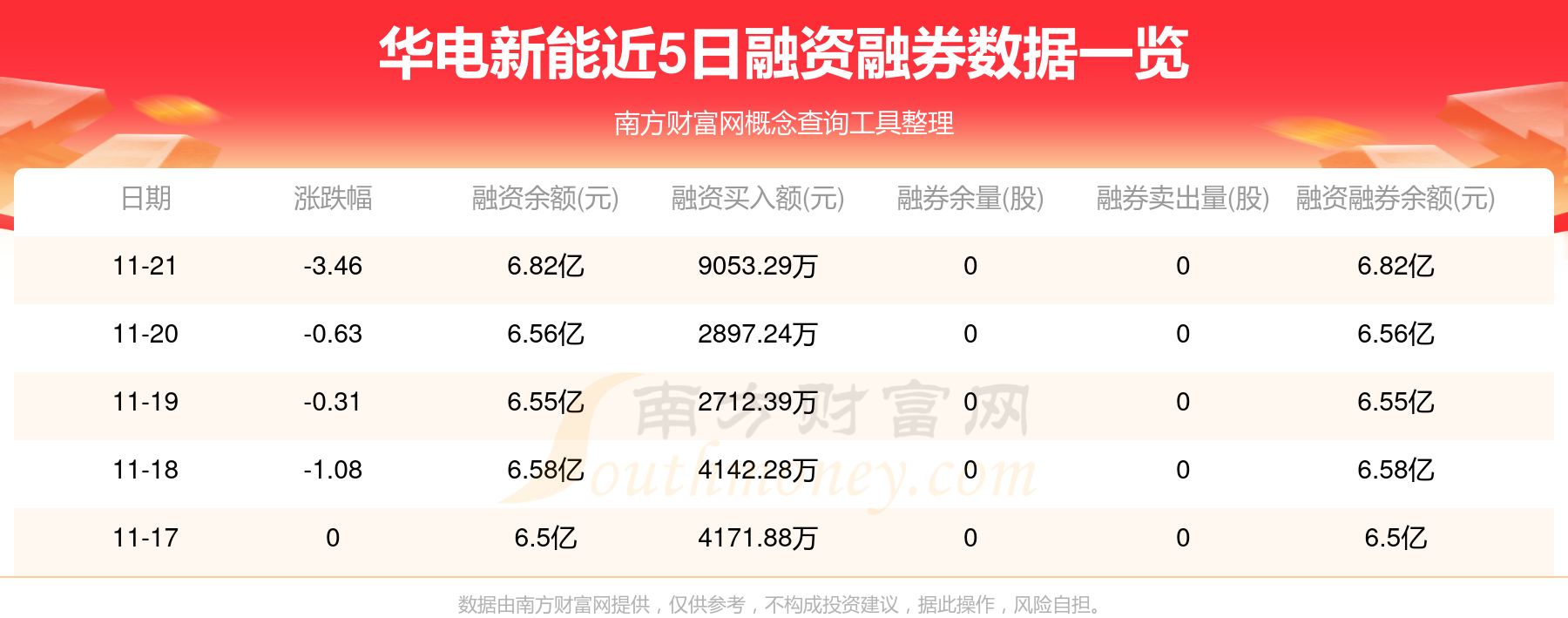 11月21日華電新能融券信息顯示,融資方面,當(dāng)日融資買入9053.29萬元,融資償還6454.6萬元,融資凈買額2598.69萬元。
