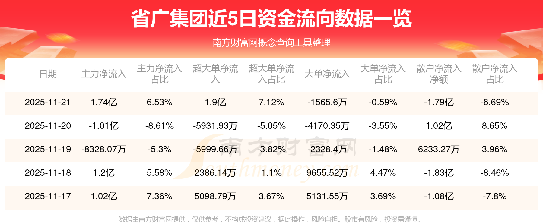 11月21日該股主力資金凈流入1.74億元,超大單資金凈流入1.9億元,大單資金凈流出1565.6萬元,中單資金凈流入421.86萬元,散戶資金凈流出1.79億元。