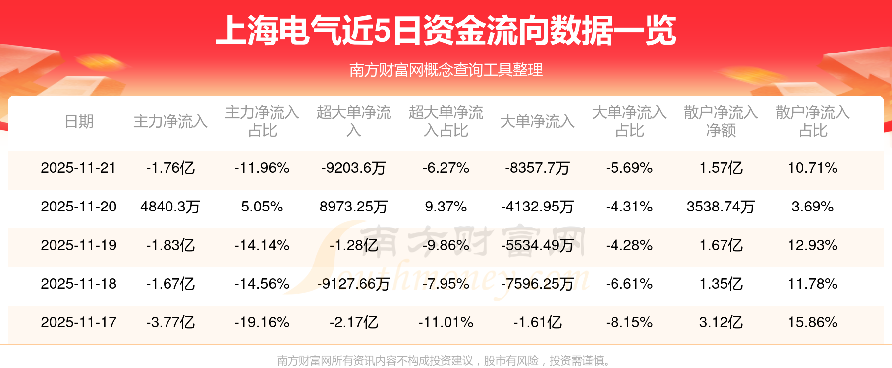 11月21日消息,上海電氣資金凈流出1.76億元,超大單凈流出9203.6萬元,換手率1.38%,成交金額14.69億元。