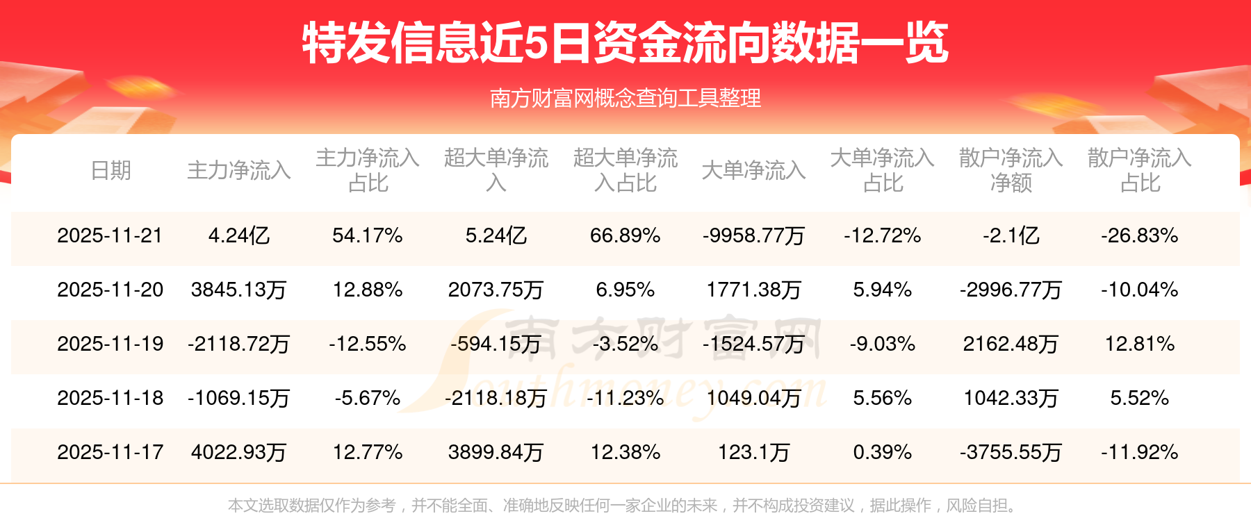 11月21日消息,特發(fā)信息資金凈流入4.24億元,超大單凈流入5.24億元,換手率8.57%,成交金額7.83億元。