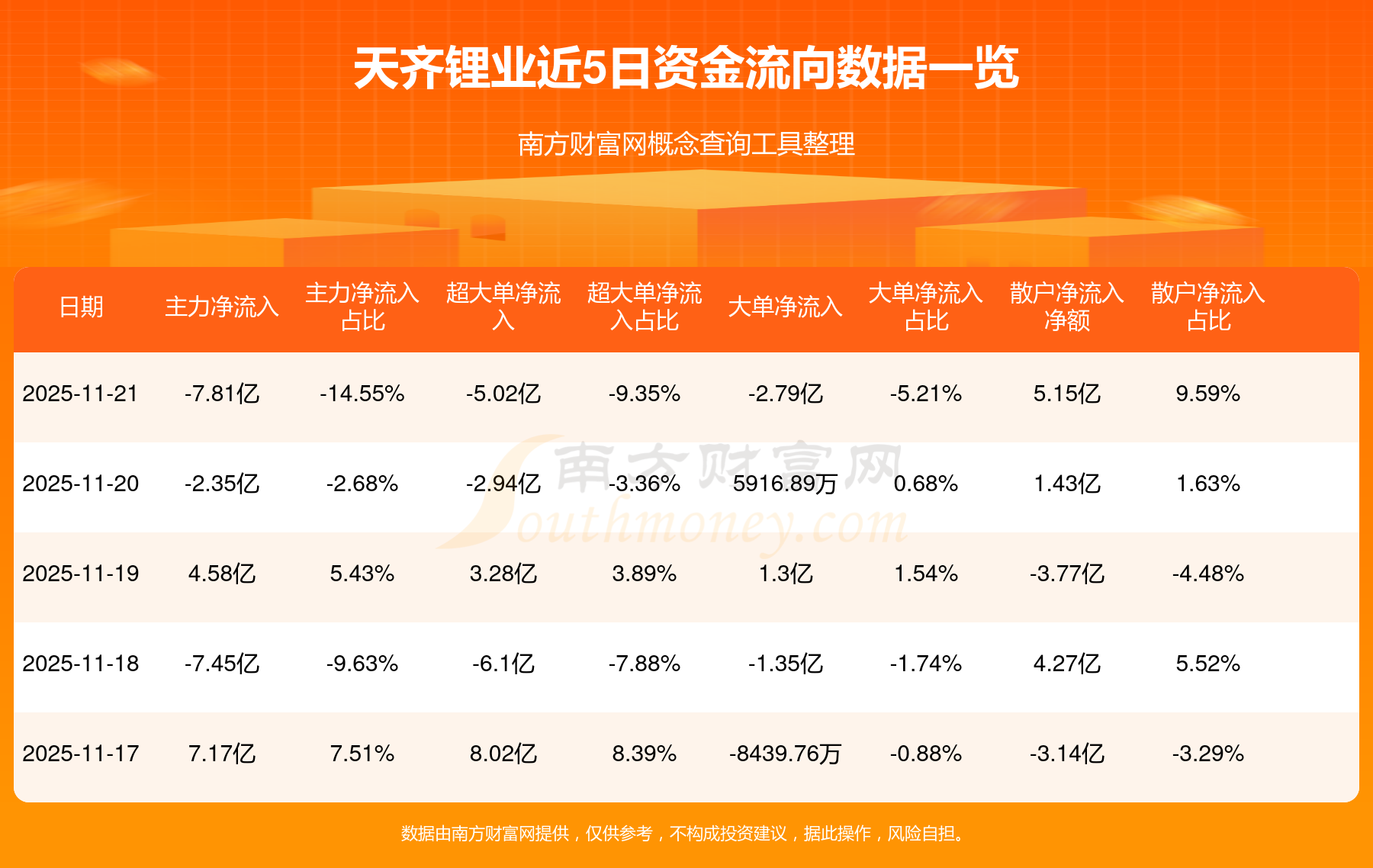 資金流向數(shù)據(jù)方面,11月21日主力資金凈流流出7.81億元,超大單資金凈流出5.02億元,大單資金凈流出2.79億元,散戶(hù)資金凈流入5.15億元。