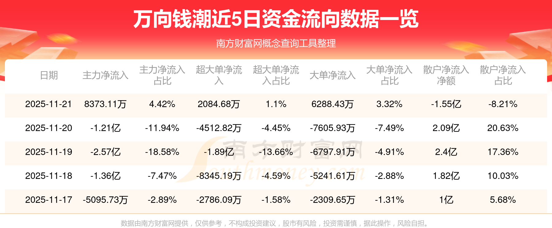11月21日消息,萬向錢潮下午三點收盤報11.640元,漲0.69%,成交金額18.94億元,換手率4.88%。