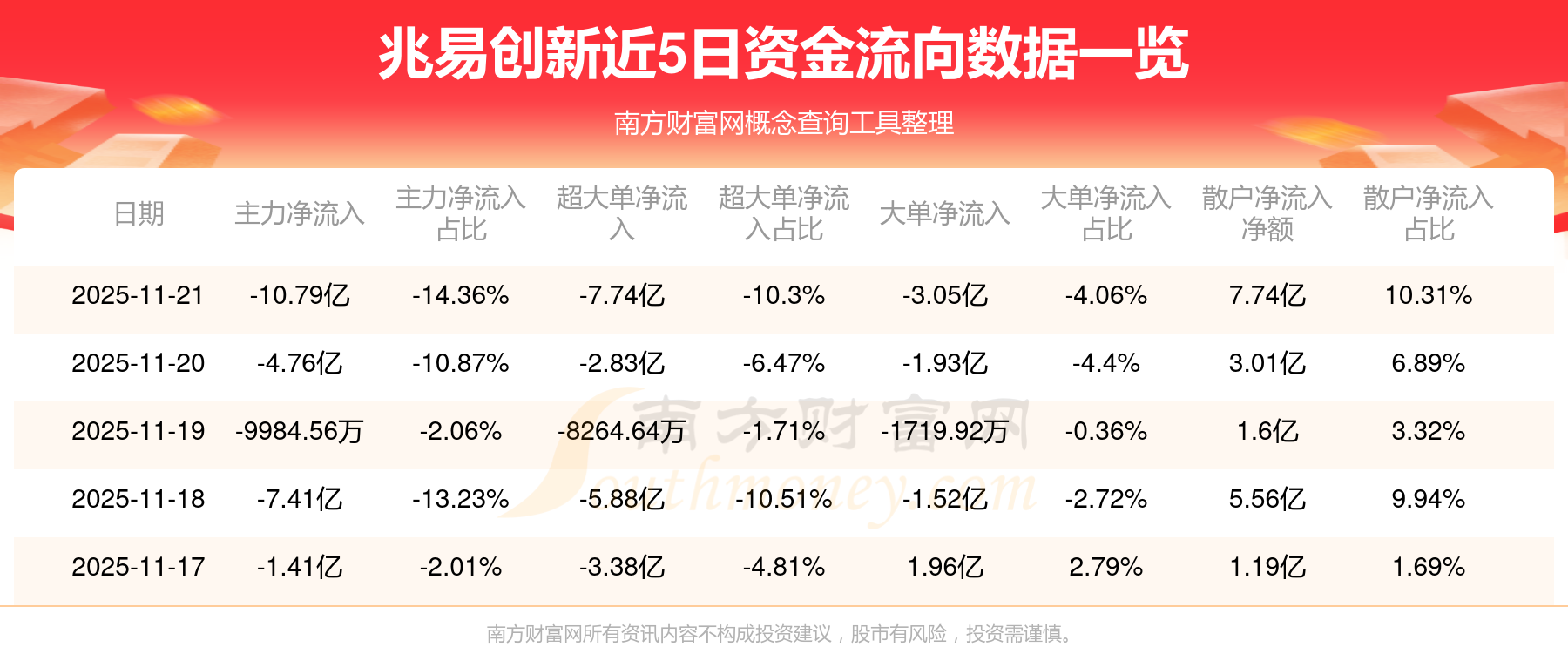 近5日資金流向一覽見下表: