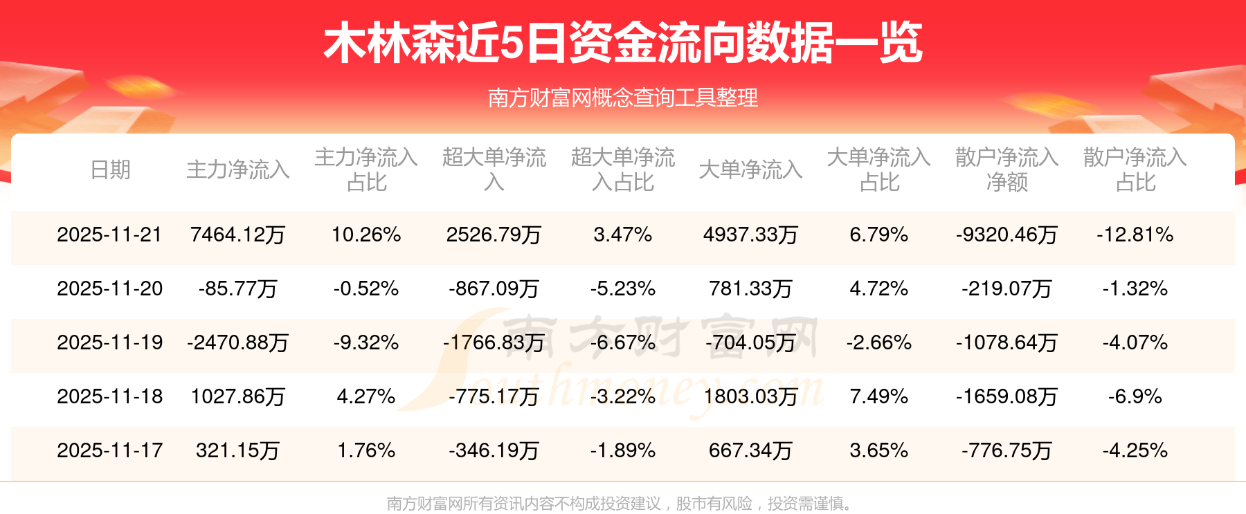 11月21日消息,木林森主力凈流入7464.12萬元,超大單凈流入2526.79萬元,散戶凈流出9320.46萬元。