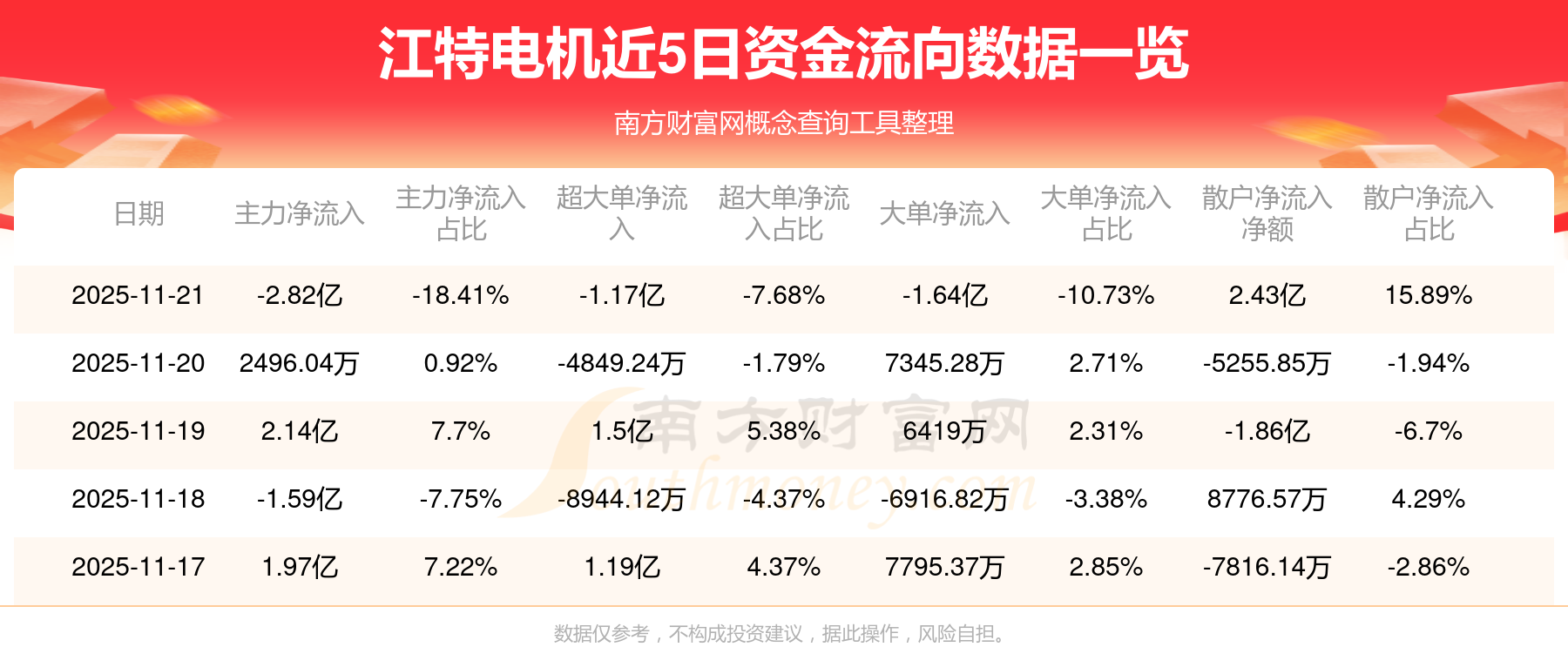 近5日資金流向一覽見下表: