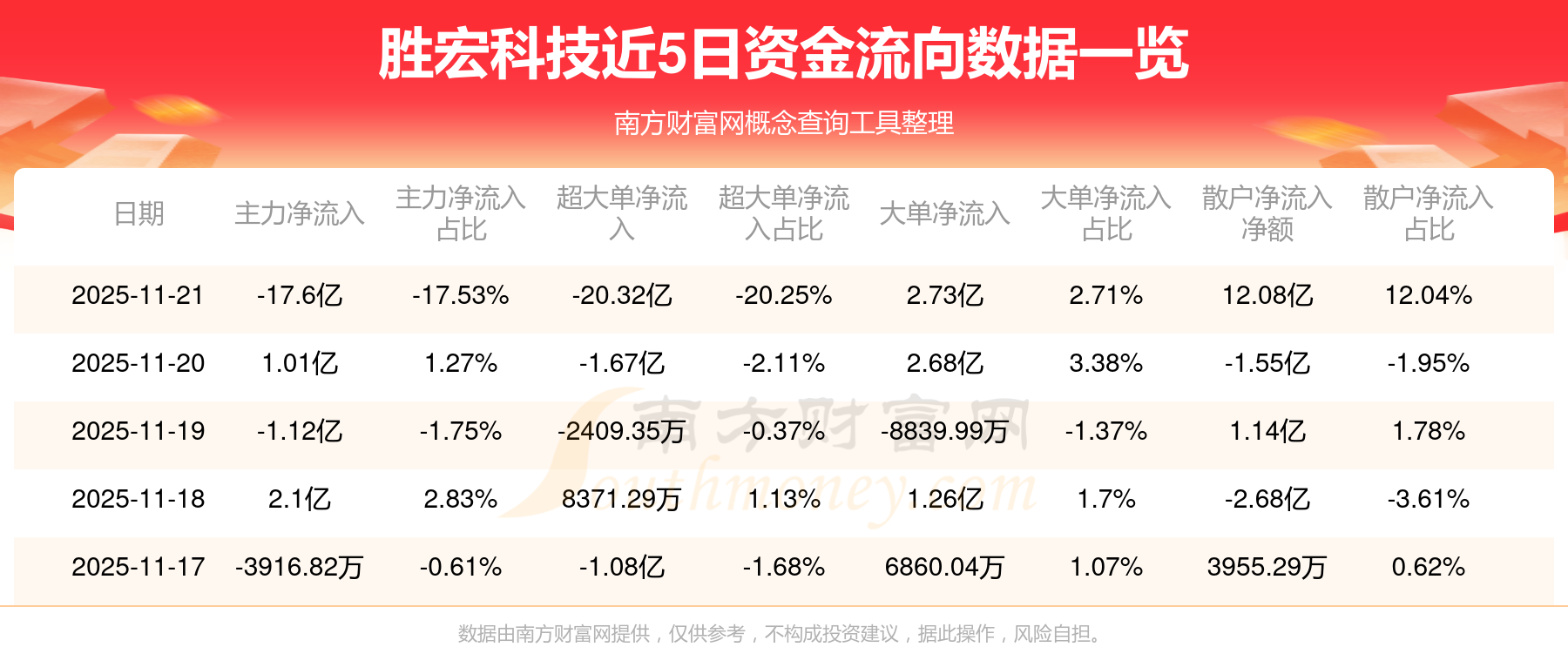近5日資金流向一覽見下表: