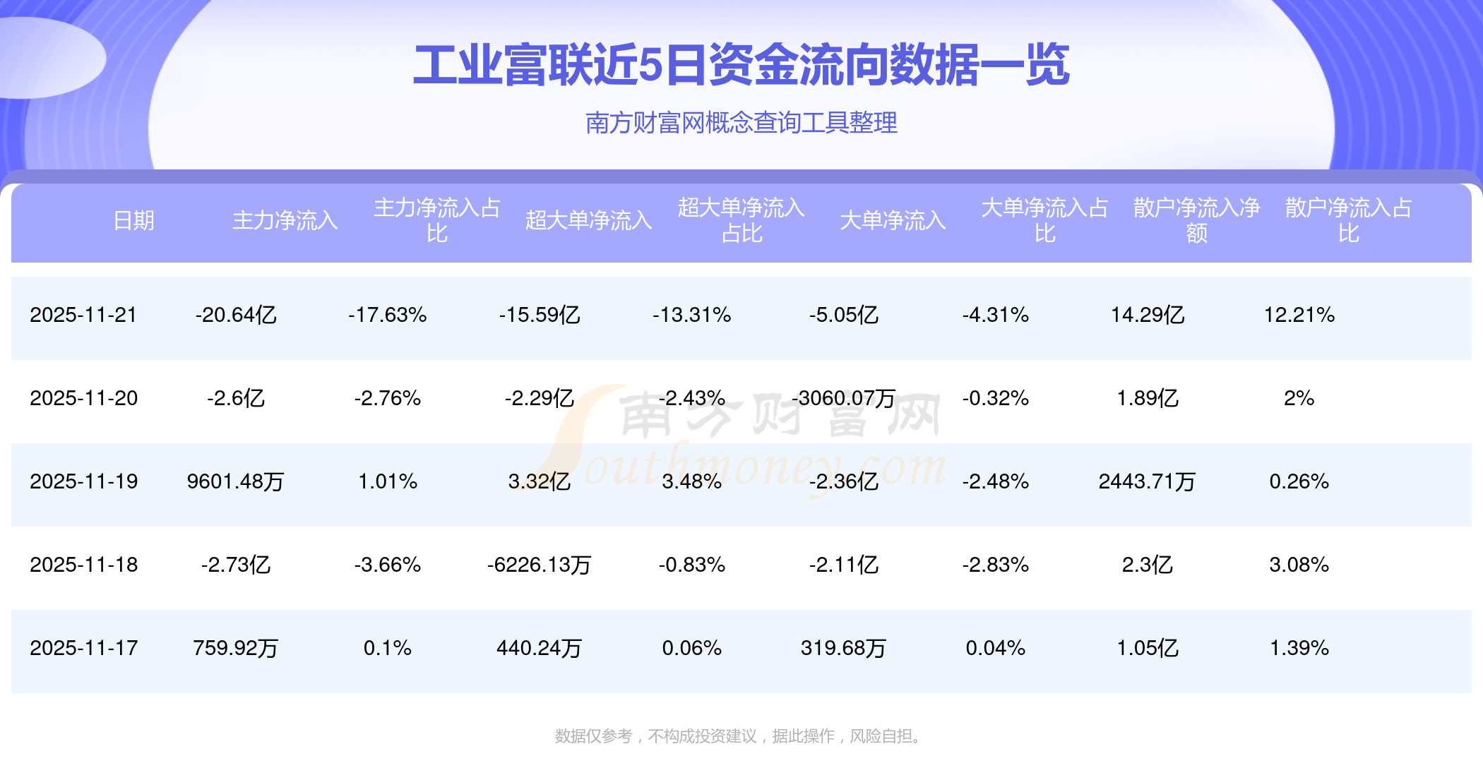 11月21日消息,工業(yè)富聯(lián)主力資金凈流出20.64億元,超大單資金凈流出15.59億元,散戶資金凈流入14.29億元。