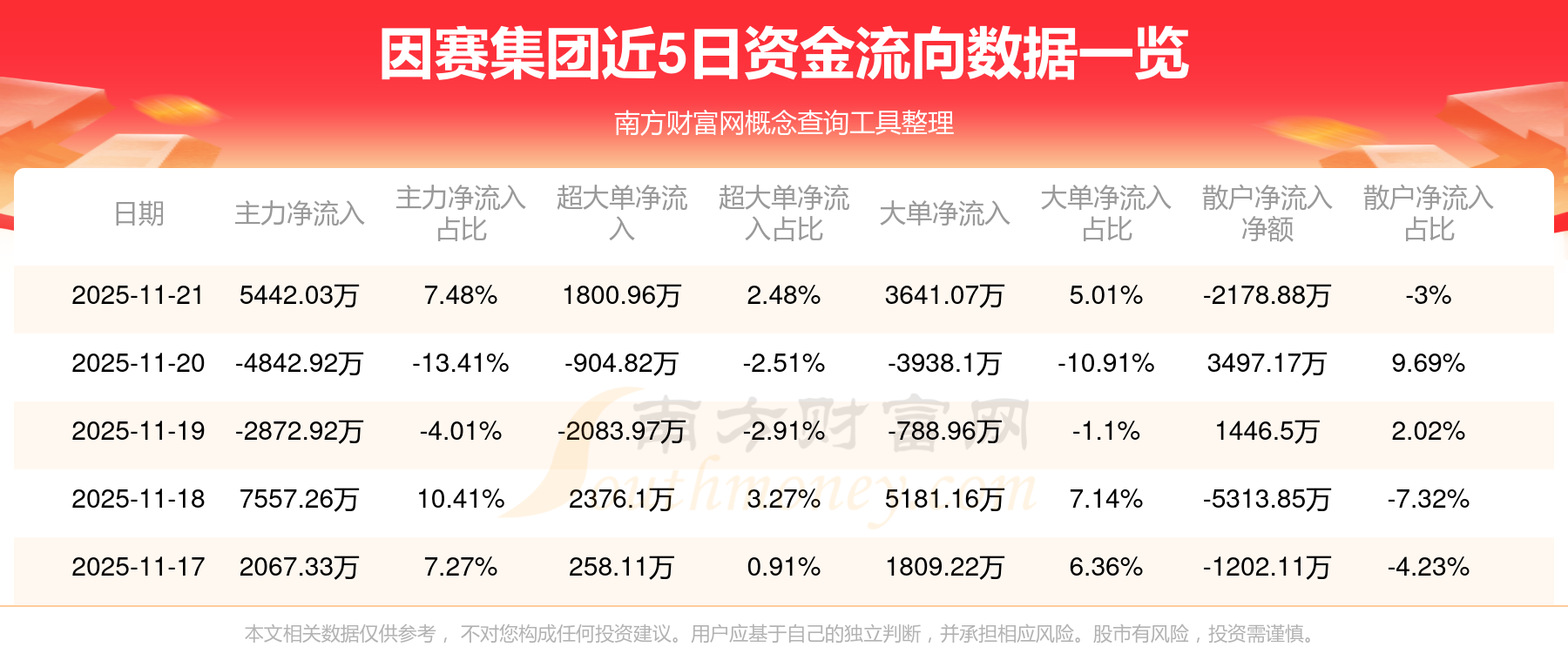 11月21日消息,因賽集團(tuán)主力資金凈流入5442.03萬元,超大單資金凈流入1800.96萬元,散戶資金凈流出2178.88萬元。