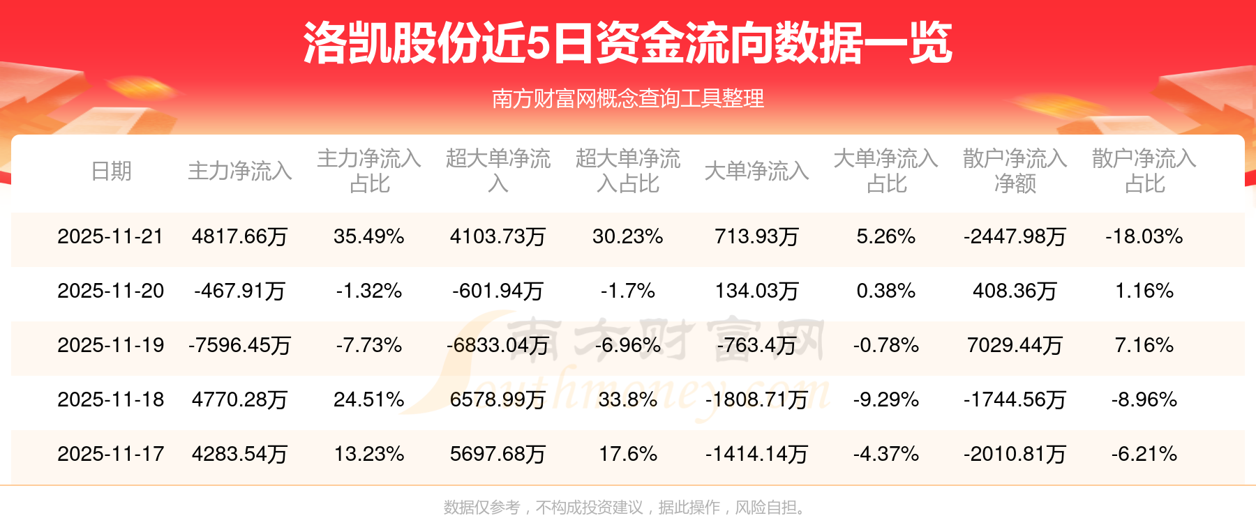 資金流向數(shù)據(jù)方面,11月21日主力資金凈流流入4817.66萬元,超大單資金凈流入4103.73萬元,大單資金凈流入713.93萬元,散戶資金凈流出2447.98萬元。