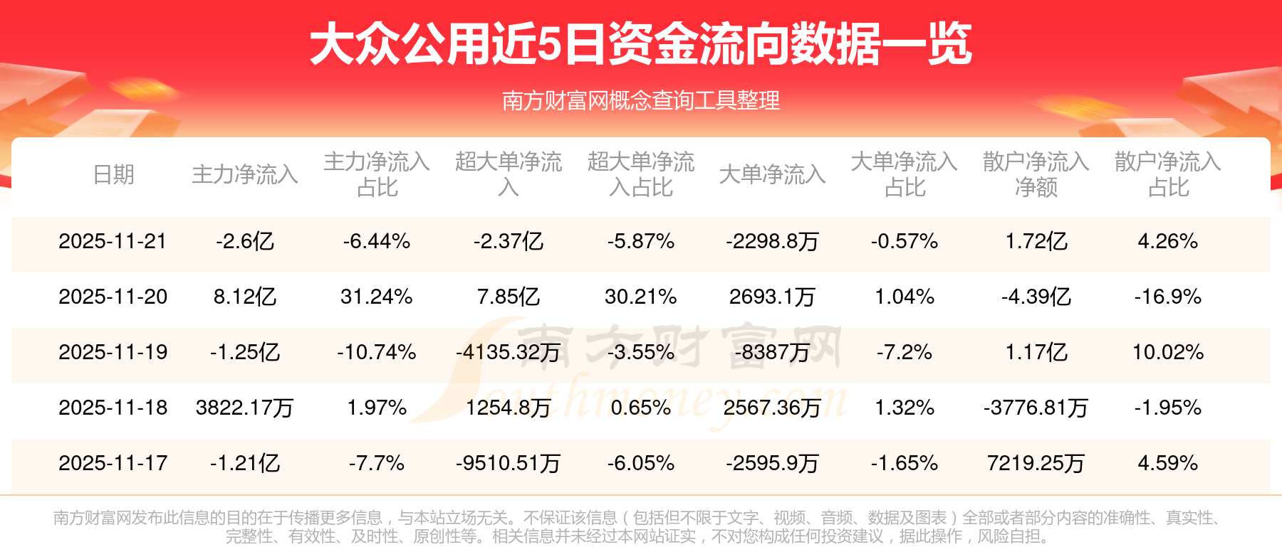 近5日資金流向一覽見下表: