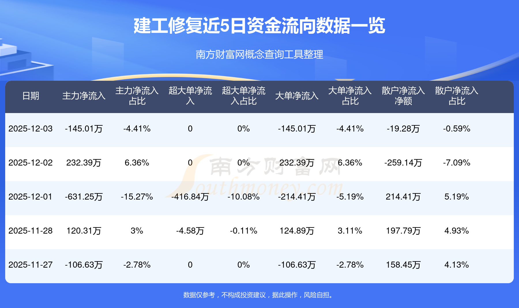近5日資金流向一覽見下表: