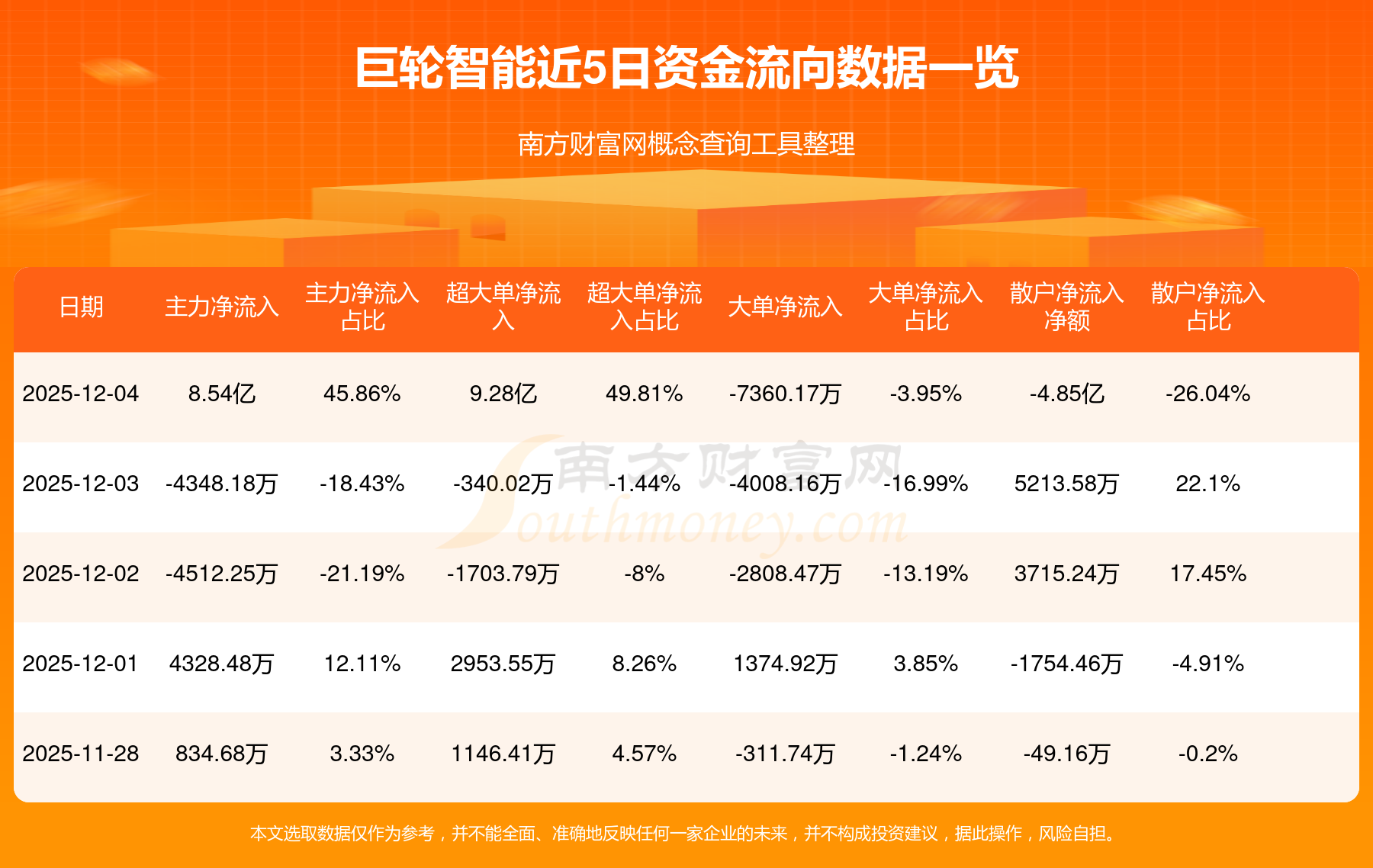 12月4日該股主力凈流入8.54億元,超大單凈流入9.28億元,大單凈流出7360.17萬元,中單凈流出3.69億元,散戶凈流出4.85億元。