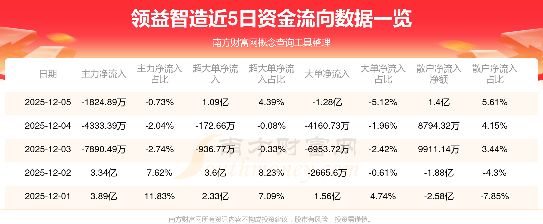 12月5日消息,領(lǐng)益智造資金凈流出1824.89萬元,超大單資金凈流入1.09億元,換手率2.36%,成交金額24.93億元。