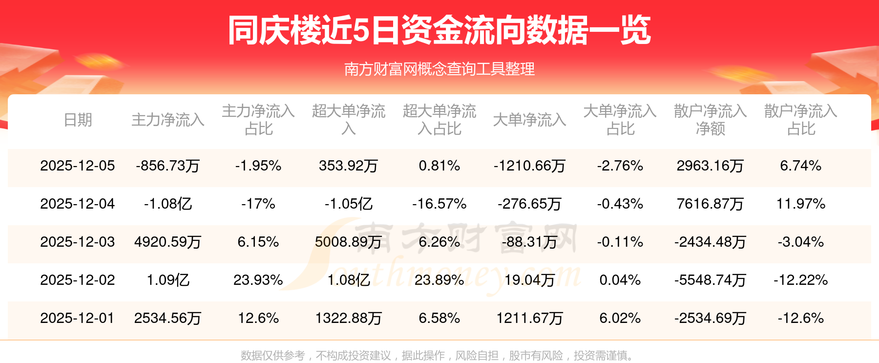 12月5日消息,同慶樓資金凈流出856.73萬元,超大單資金凈流入353.92萬元,換手率8.21%,成交金額4.39億元。