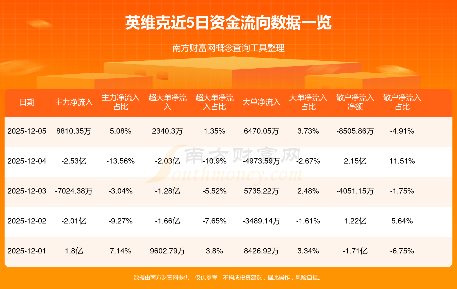 12月5日該股主力資金凈流入8810.35萬元,超大單資金凈流入2340.3萬元,大單資金凈流入6470.05萬元,中單資金凈流出304.49萬元,散戶資金凈流出8505.86萬元。