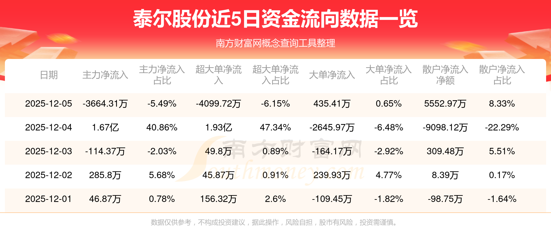12月5日消息,泰爾股份資金凈流出3664.31萬元,超大單凈流出4099.72萬元,換手率18.04%,成交金額6.67億元。