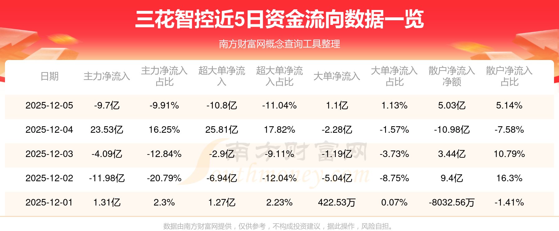 12月5日消息,三花智控資金凈流出9.7億元,超大單資金凈流出10.8億元,換手率5.95%,成交金額97.86億元。