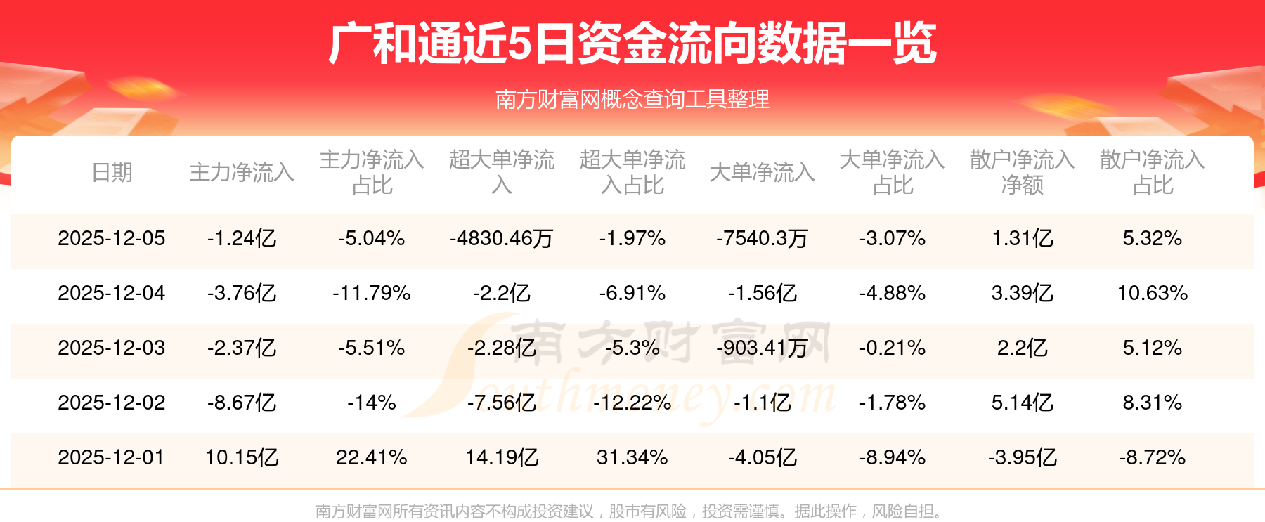12月5日消息,廣和通資金凈流出1.24億元,超大單資金凈流出4830.46萬元,換手率15.57%,成交金額24.56億元。