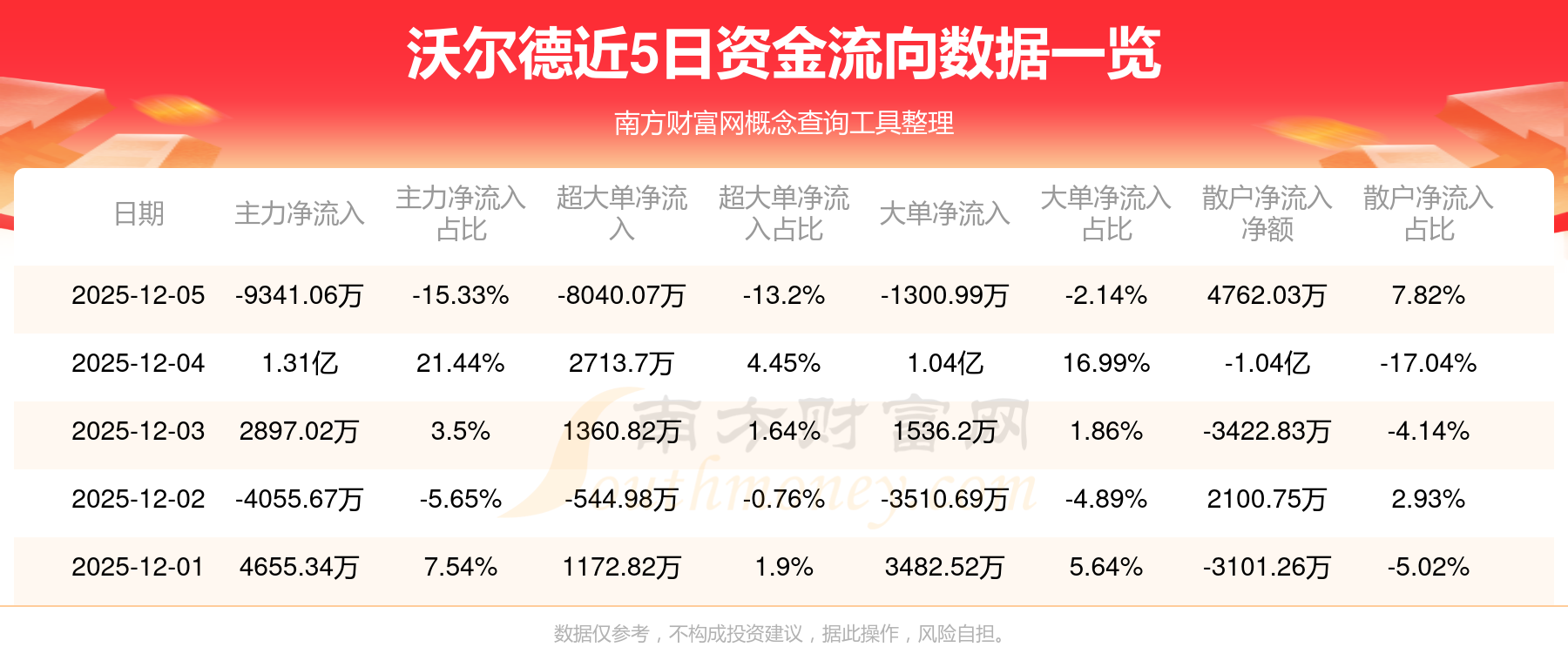 12月5日消息,沃爾德資金凈流出9341.06萬元,超大單凈流出8040.07萬元,換手率6.26%,成交金額6.09億元。