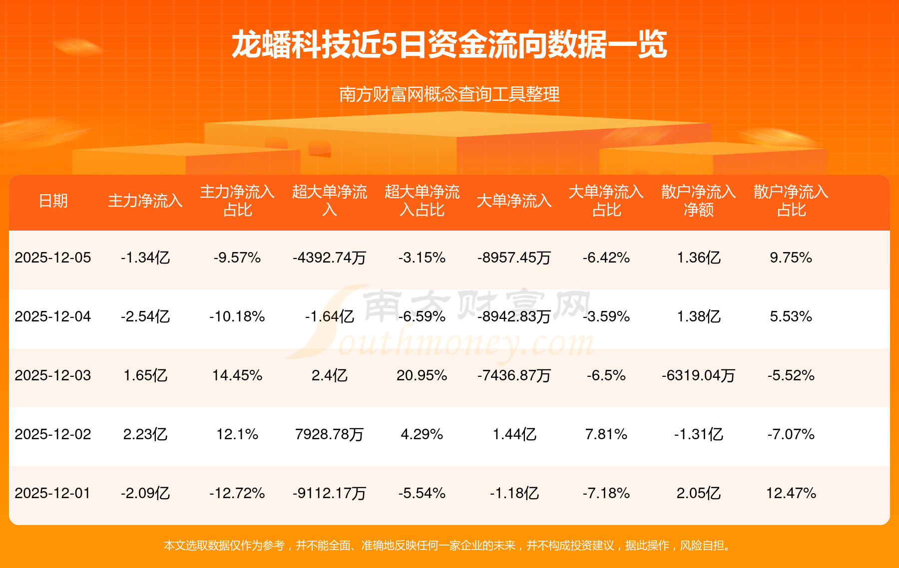 12月5日消息,龍蟠科技12月5日主力凈流出1.34億元,超大單凈流出4392.74萬元,大單凈流出8957.45萬元,散戶凈流入1.36億元。