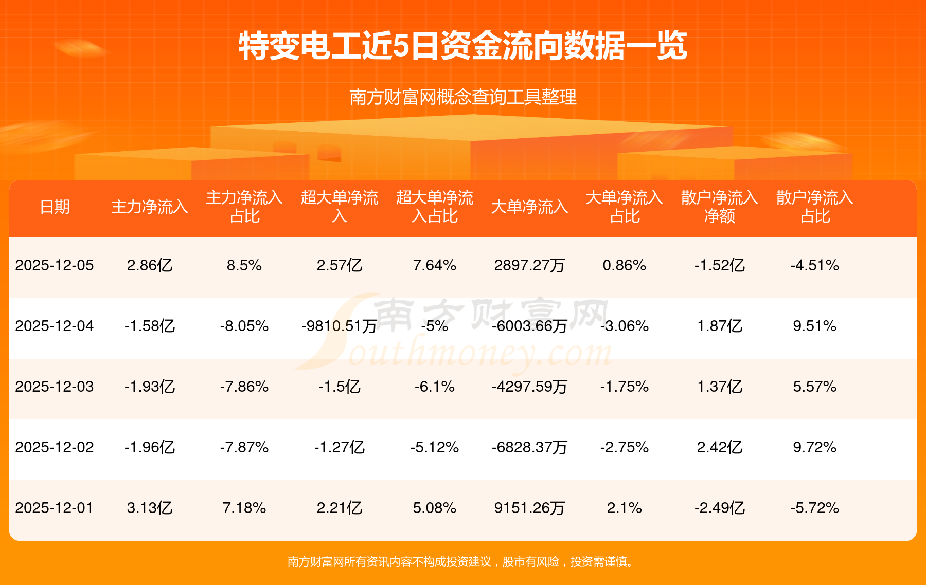 近5日資金流向一覽見下表: