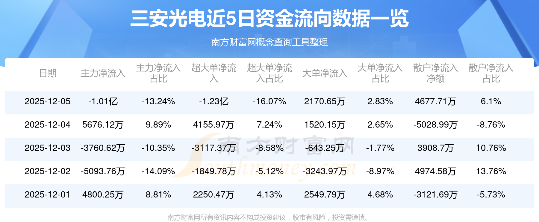 近5日資金流向一覽見下表: