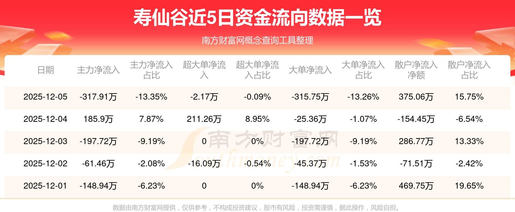 12月5日消息,壽仙谷主力資金凈流出317.91萬元,超大單資金凈流出2.17萬元,散戶資金凈流入375.06萬元。