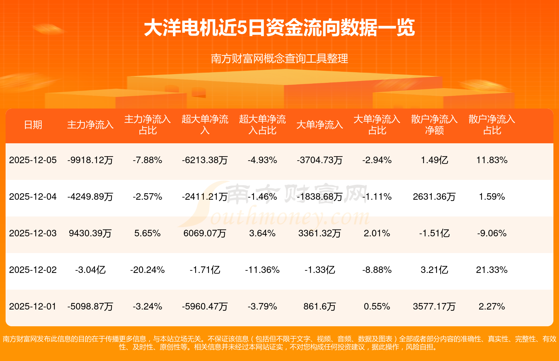 12月3日消息,大洋電機(jī)5日內(nèi)股價(jià)下跌3.39%,該股最新報(bào)10.900元漲1.85%,成交12.59億元,換手率6.32%。