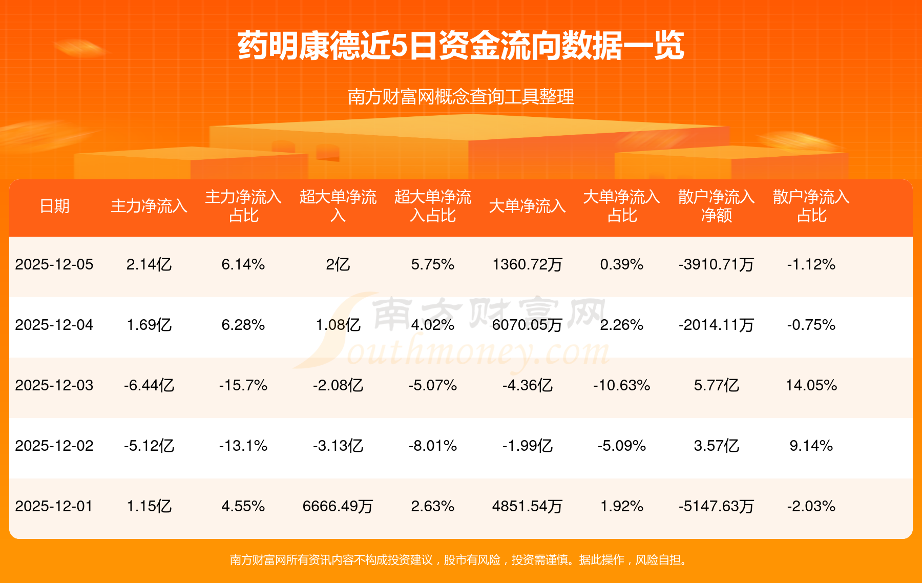 12月5日消息,藥明康德資金凈流入2.14億元,超大單資金凈流入2億元,換手率1.55%,成交金額34.77億元。
