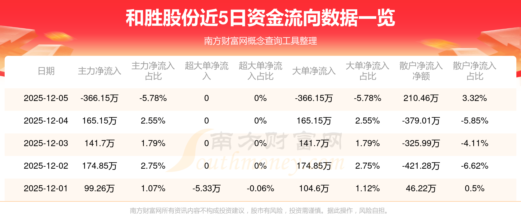近5日資金流向一覽見下表: