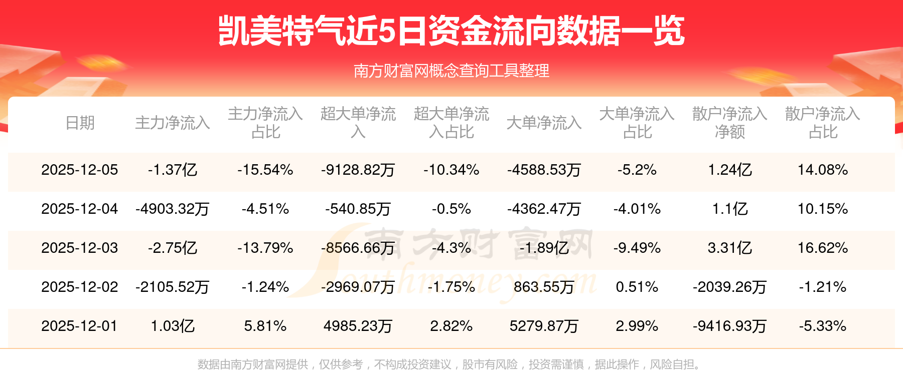 12月5日該股主力資金凈流出1.37億元,超大單資金凈流出9128.82萬元,大單資金凈流出4588.53萬元,中單資金凈流入1291.87萬元,散戶資金凈流入1.24億元。