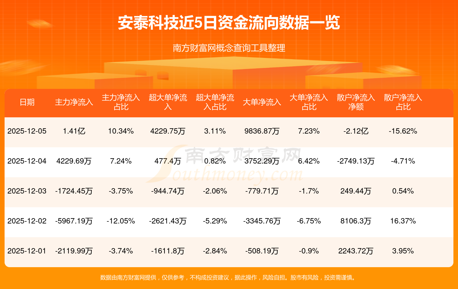 12月5日該股主力凈流入1.41億元,超大單凈流入4229.75萬(wàn)元,大單凈流入9836.87萬(wàn)元,中單凈流入7180.45萬(wàn)元,散戶(hù)凈流出2.12億元。