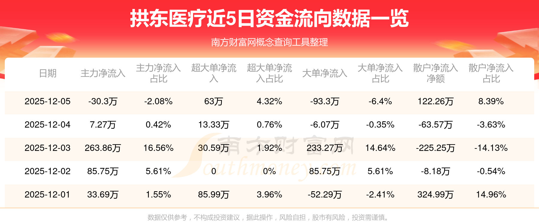 12月5日資金流向一覽表|拱東醫(yī)療(605369)