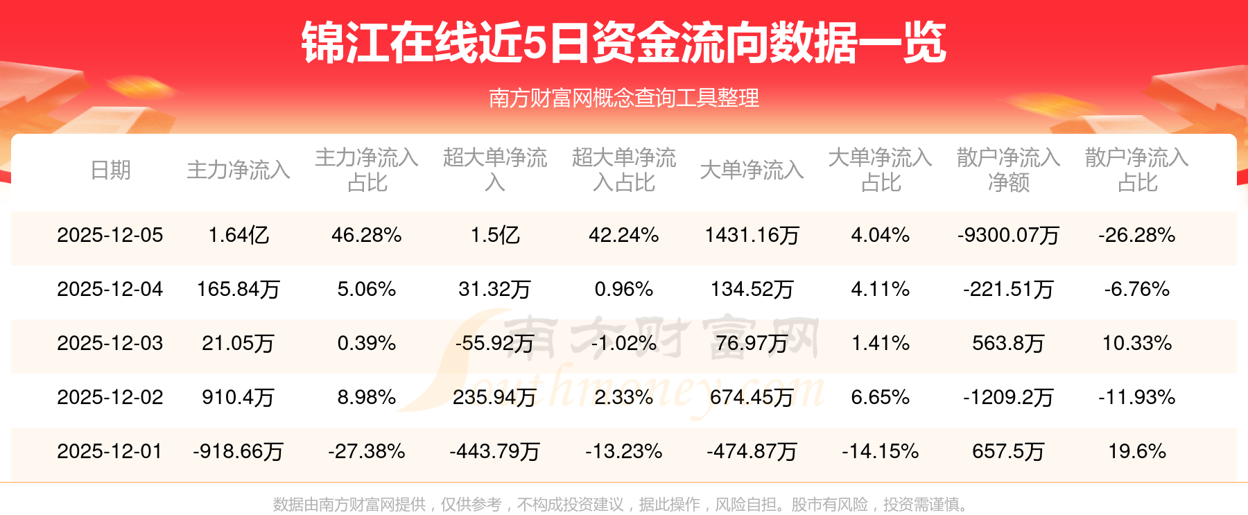 近5日資金流向一覽見下表:
