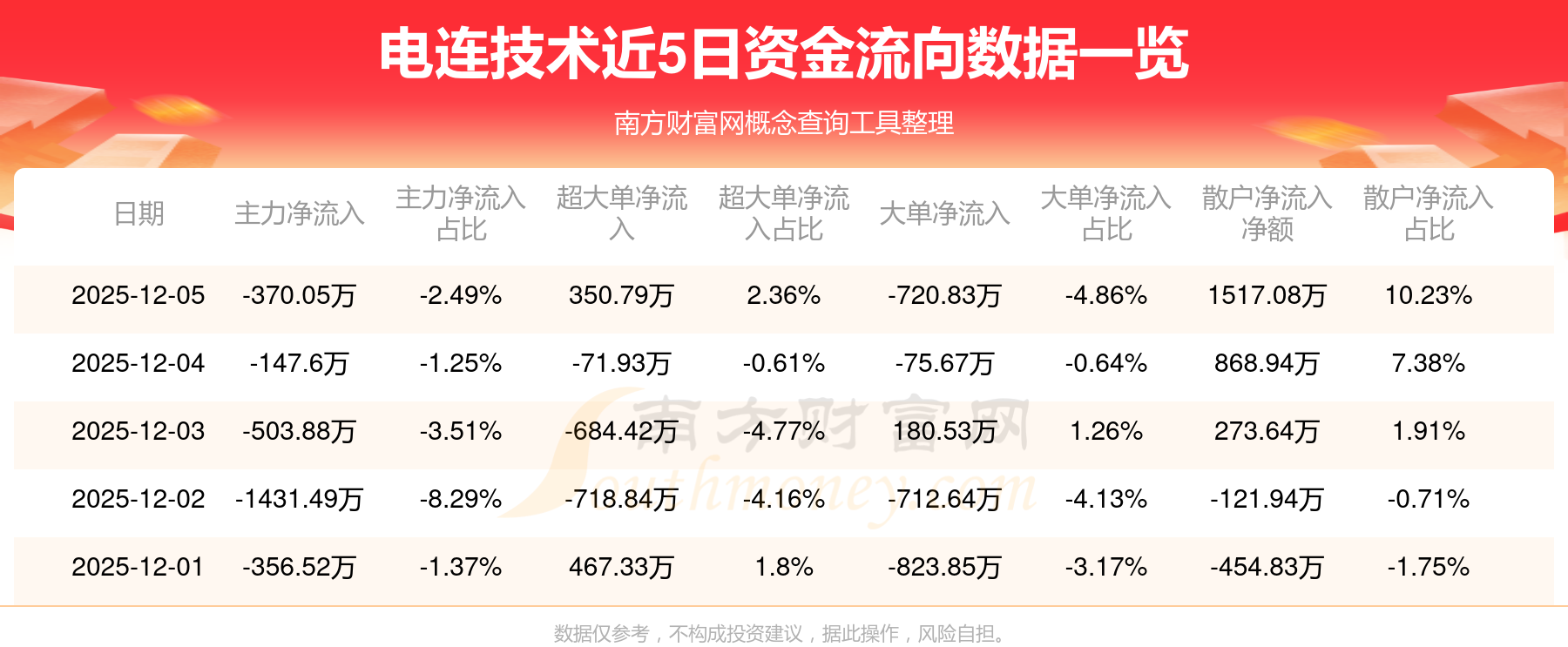 12月5日消息,電連技術(shù)資金凈流出370.05萬元,超大單凈流入350.79萬元,換手率0.89%,成交金額1.48億元。