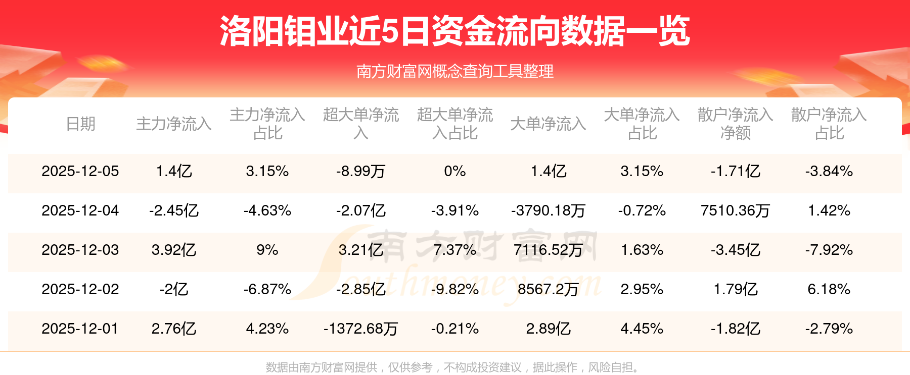 洛陽鉬業(yè),12月5日行情及資金流向概況