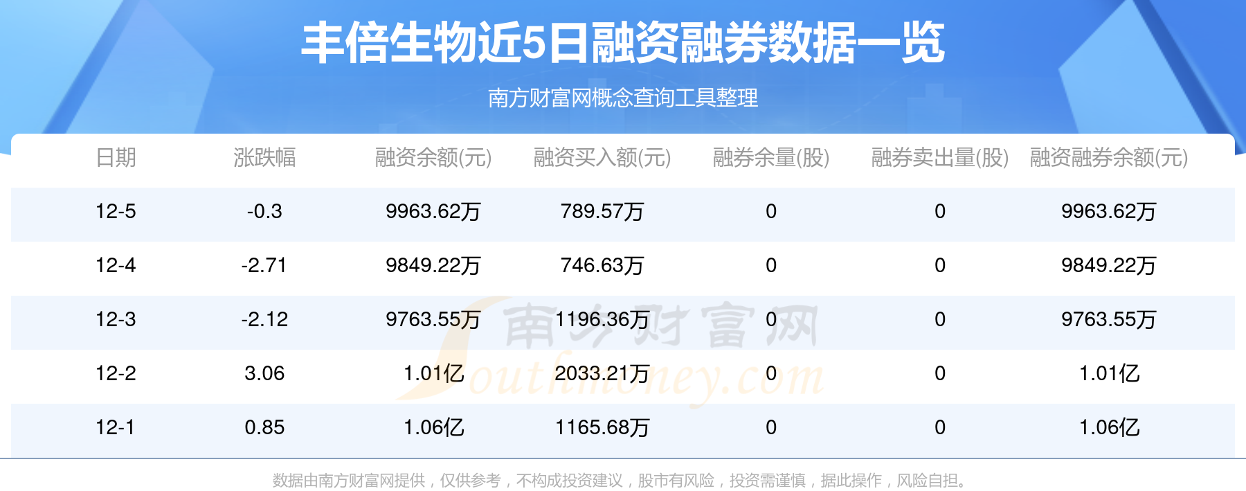 豐倍生物12月5日融券信息顯示,融資方面,當(dāng)日融資買入789.57萬元,融資償還675.17萬元,融資凈買額114.4萬元。近5日融資融券數(shù)據(jù)一覽見下表: