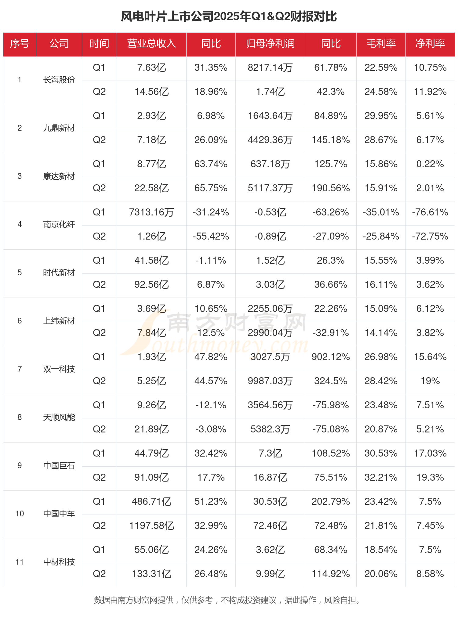 根據(jù)南方財(cái)富網(wǎng)概念查詢工具數(shù)據(jù)統(tǒng)計(jì),A股11家風(fēng)電葉片相關(guān)上市公司已發(fā)布2025年上半年財(cái)報(bào)。2025年上半年大家都過得怎么樣?一起來看看吧。