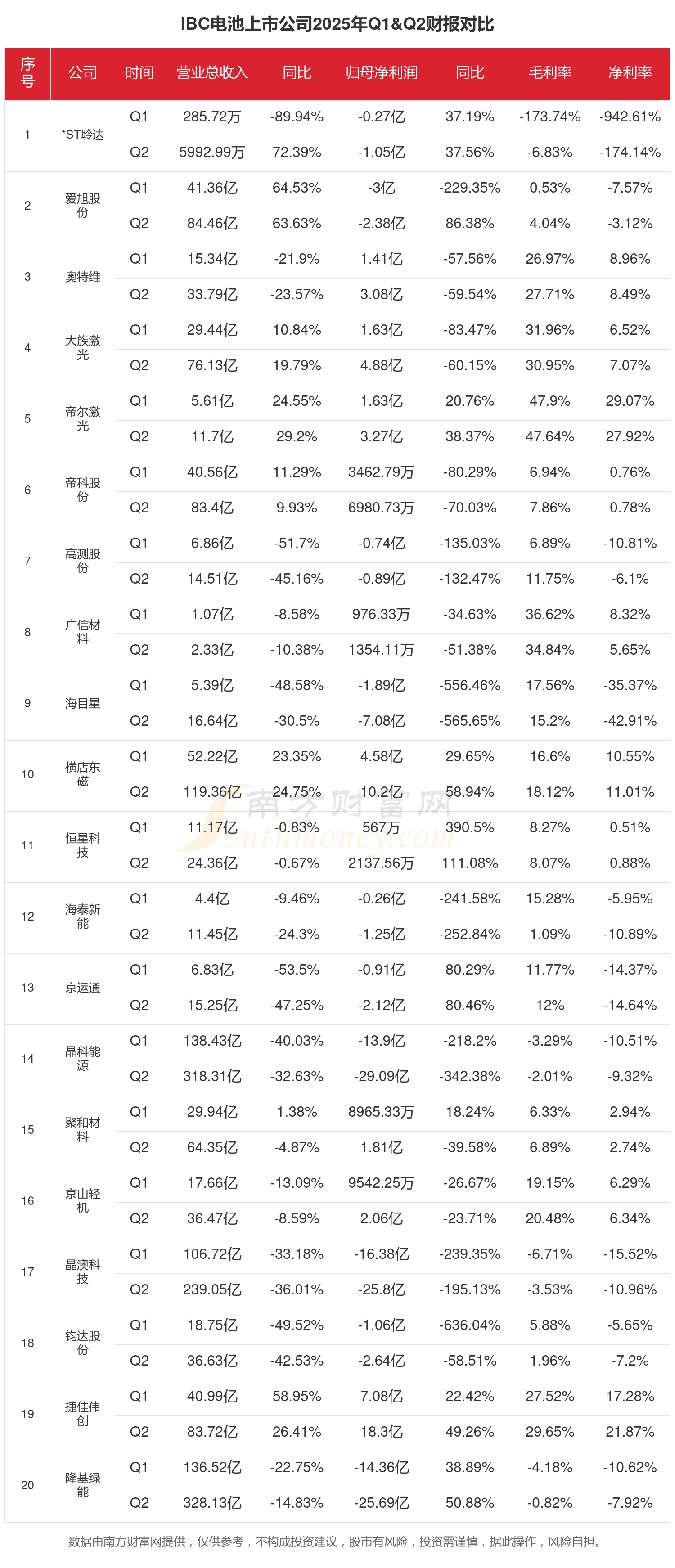根據南方財富網概念查詢工具數據統(tǒng)計,A股32家IBC電池相關上市公司已發(fā)布2025年上半年財報。2025年上半年大家都過得怎么樣?一起來看看吧。