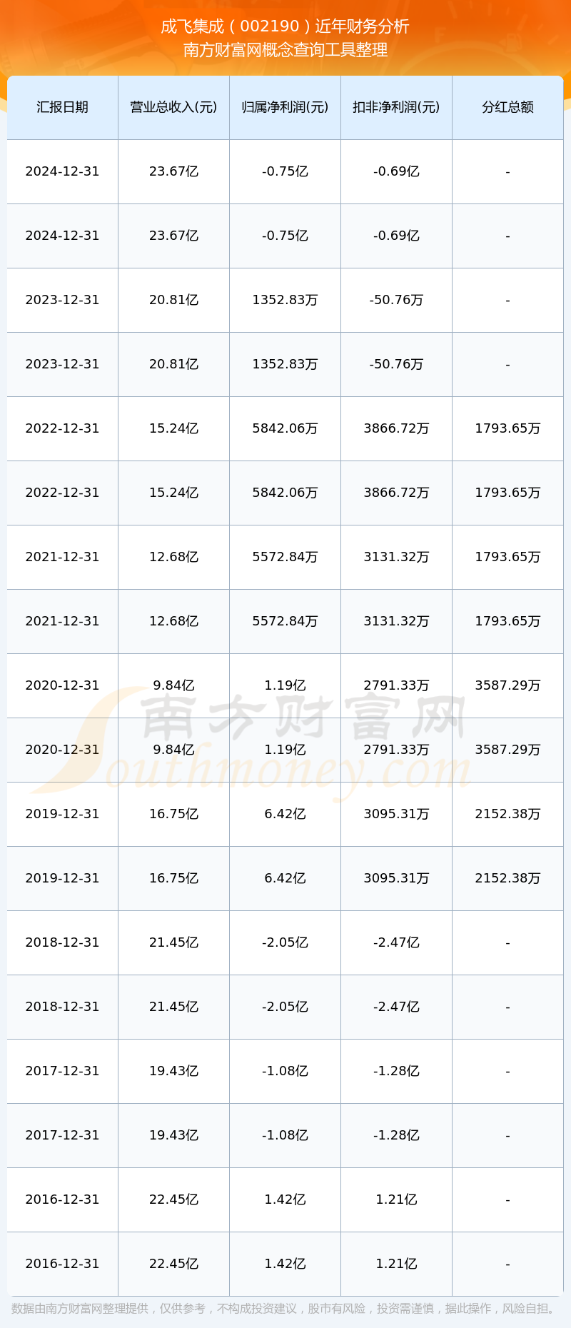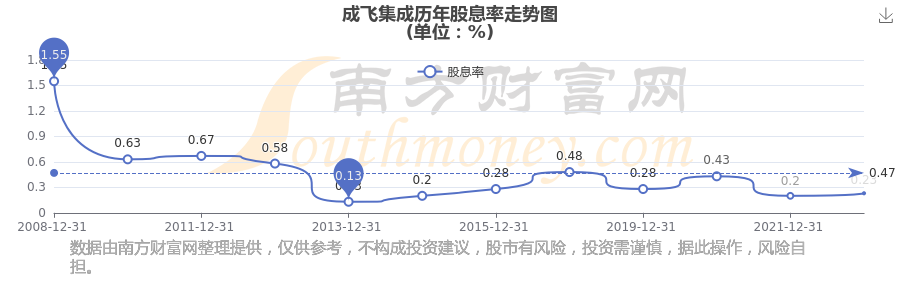 成飛集成最新一次公布的分紅方案:10派0.5元。