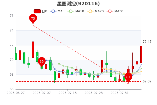 8月7日收盤消息,星圖測控最新報71.810元,成交量486.31萬手,總市值為114.73億元。