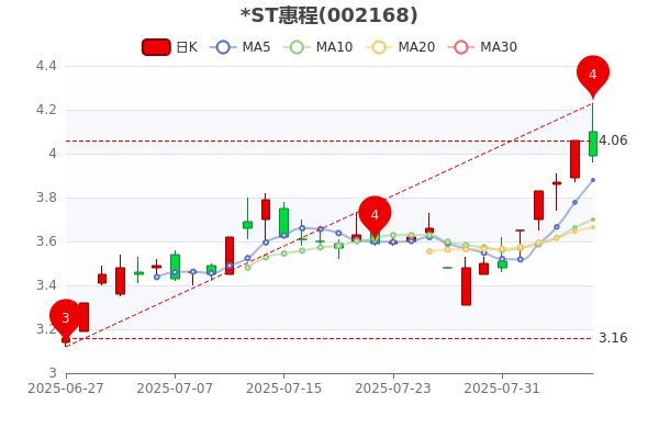 8月7日收盤消息,ST惠程5日內(nèi)股價(jià)上漲8.52%,今年來漲幅上漲30.58%,最新報(bào)3.990元,跌1.72%,市盈率為-20.92。