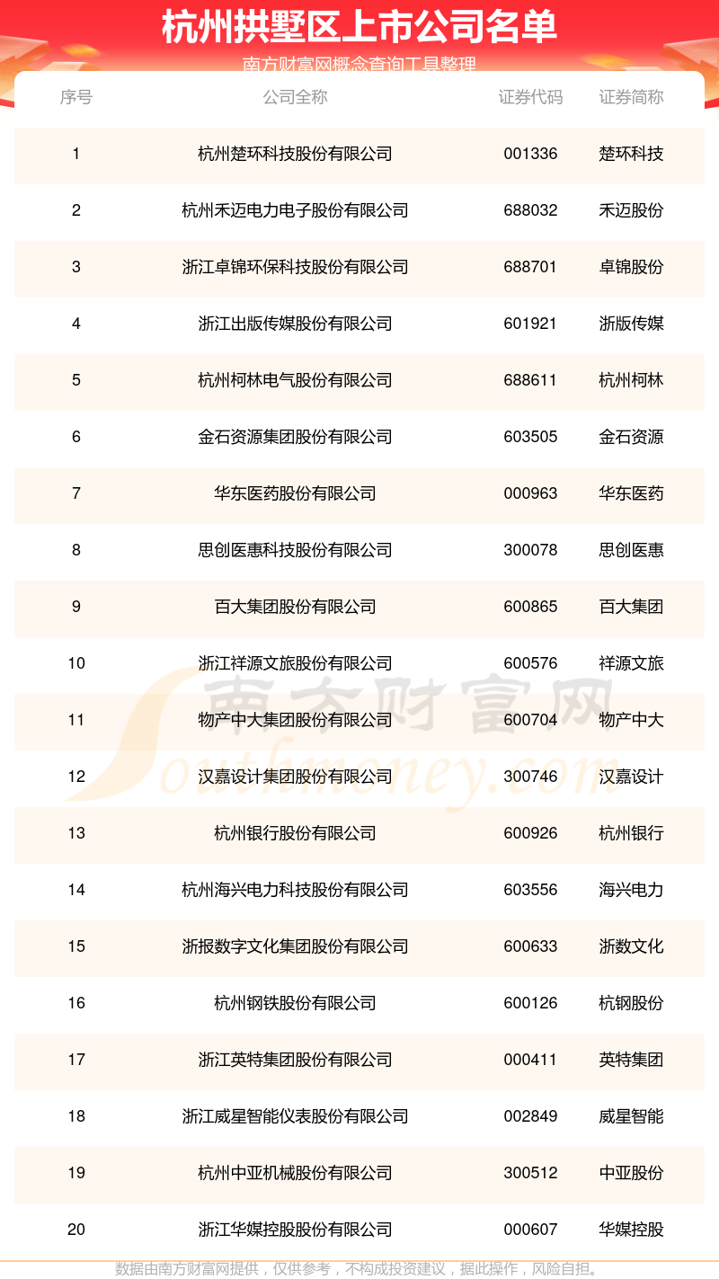 杭州拱墅區(qū)的上市公司都有哪些?南方財(cái)富網(wǎng)趨勢(shì)選股系統(tǒng)為您整理了歸屬于杭州拱墅區(qū),并且在A股上市的公司。